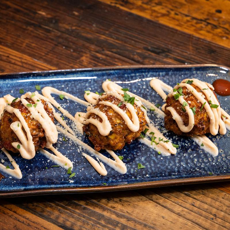 Local corn and aged cheddar cheese, lightly fried, served with sriracha aioli.
