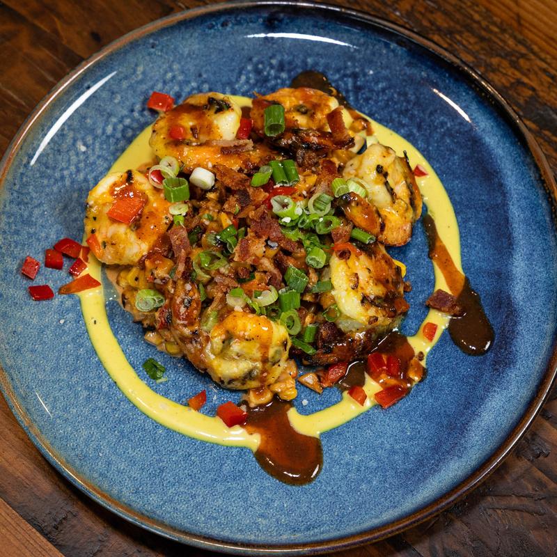 Served over roasted creamed corn, finished with house bbq, smoked bacon, and scallions.